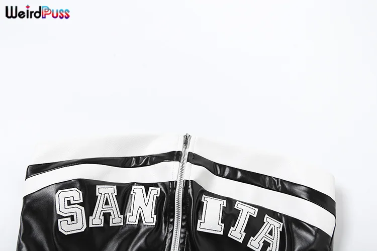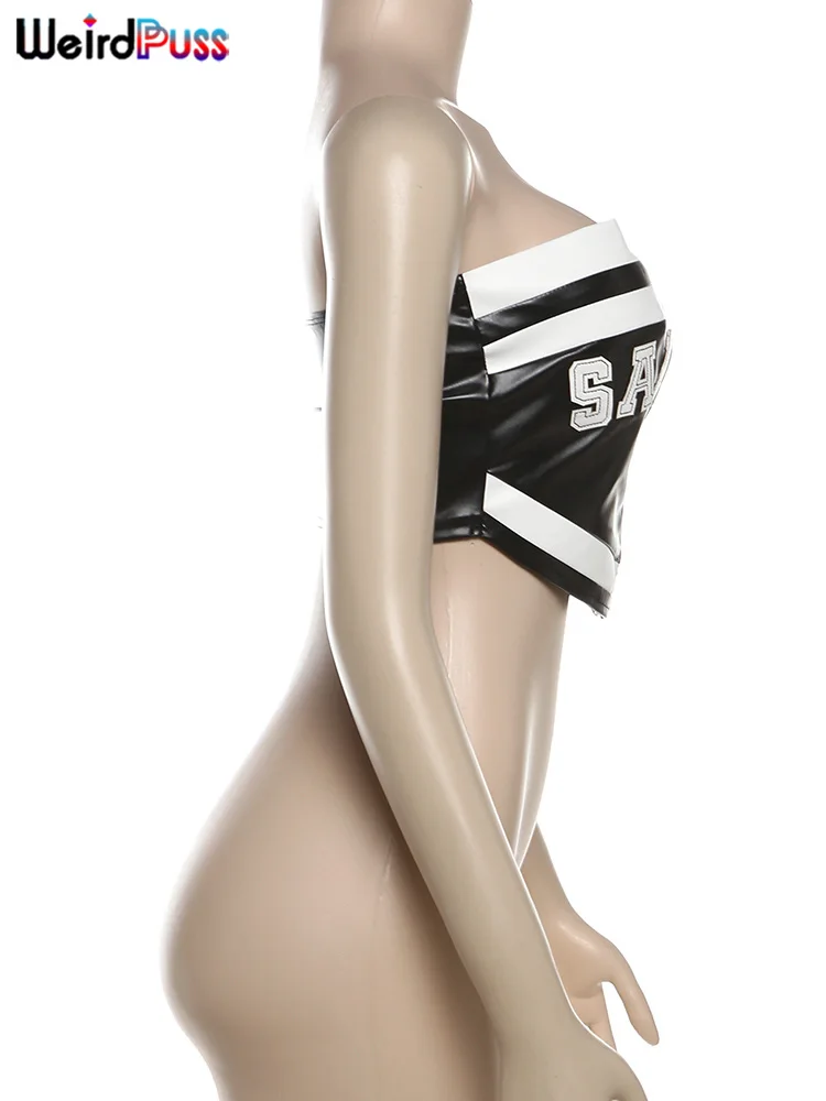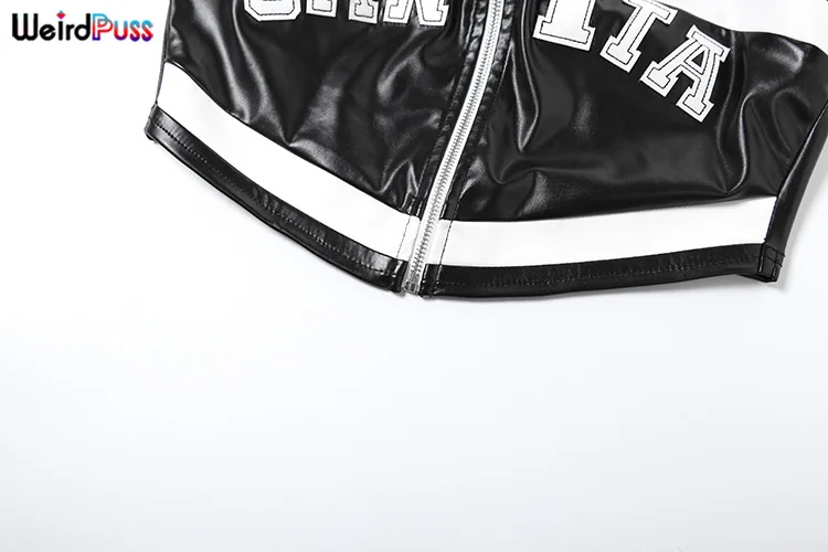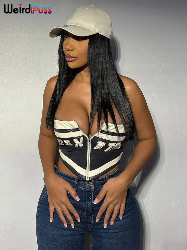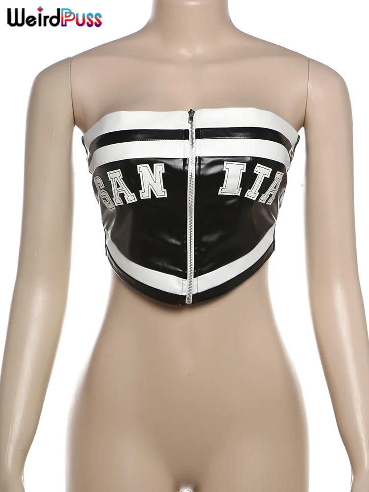 Weird Puss PU Letter Print Corset Top Women Y2K Zip Faux Leather Irregular Summer Trend Hipster Wild Streetwear Skinny Slim Vest
